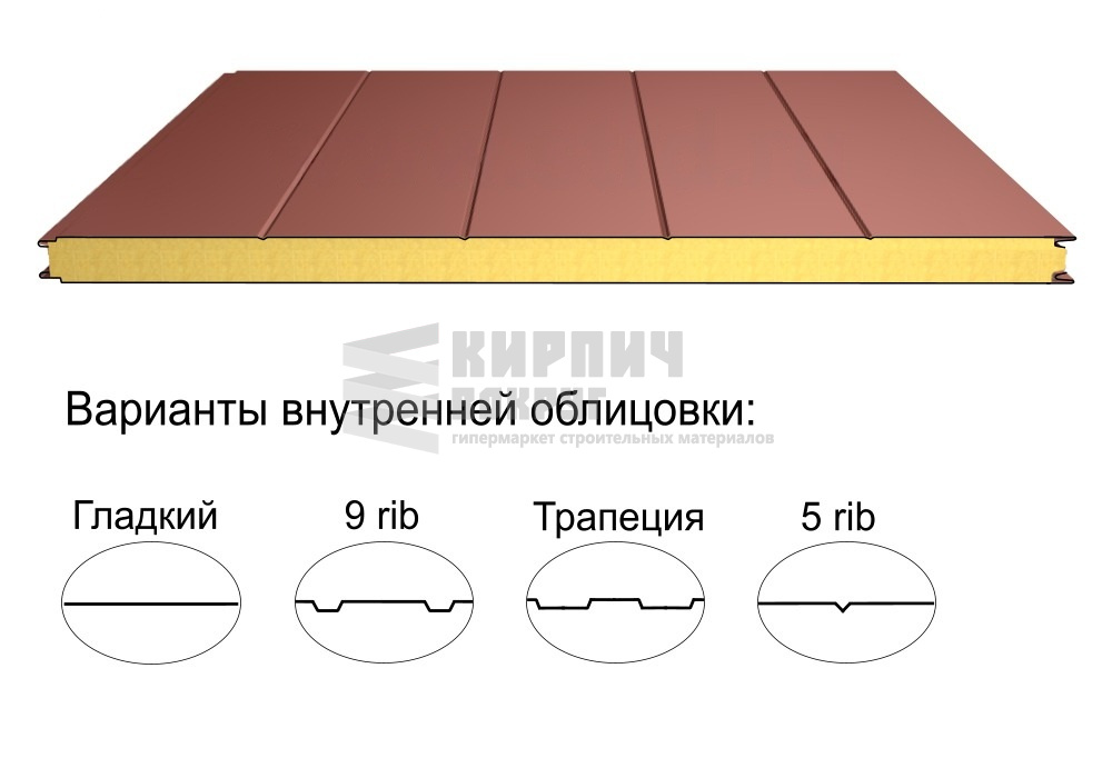 В интернет-магазине "Кирпич Вокруг" Вы можете купить Стеновая трёхслойная сэндвич-панель 5 rib 100мм 1000мм с видимым креплением минеральная вата Полиэстер Доборник в Череповце, а наши специалисты готовы вам помочь с выбором по адресу: , или оказать консультацию по телефону: .