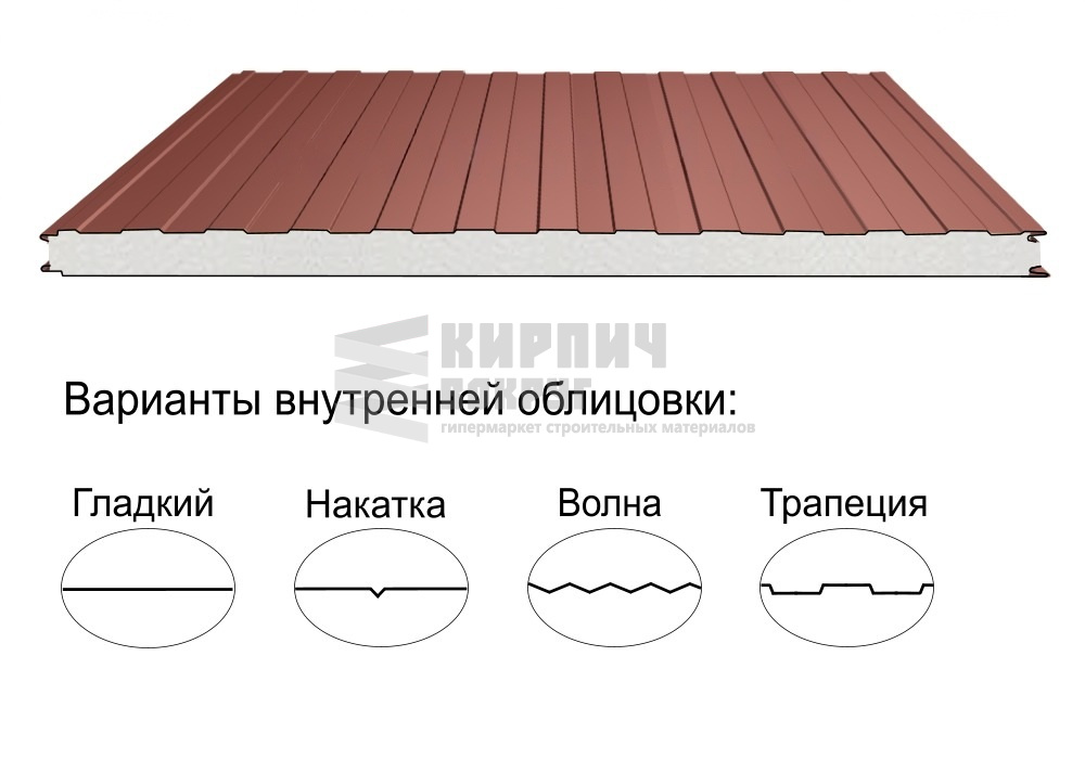 В интернет-магазине "Кирпич Вокруг" Вы можете купить Стеновая трёхслойная сэндвич-панель трапеция 50мм 1190мм с видимым креплением пенополиизоцианурат Полиэстер Металл Профиль в Череповце, а наши специалисты готовы вам помочь с выбором по адресу: , или оказать консультацию по телефону: .