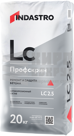 Антикоррозионный состав LC 2.5 предназначен для защиты арматуры от коррозии и создания адгезионного слоя между старым и новым бетоном. Состав: Профскрин LC2.5 изготовлен на основе цемента, фракционированного песка и модифицирующих добавок. Продукт экологически безопасен, не содержит вредных примесей, оказывающих негативное воздействие на здоровье человека. Соответствует действующим на территории Российской Федерации гигиеническим нормам. Преимущества: - Соответствует всем нормам защиты стальной арматуры при выполнении работ по бетону - Свойства материала позволяют использовать его в качестве адгезионного слоя - Быстрое схватывание состава позволяет сократить технологические перерывы, что ведет в итоге к снижению производственных расходов - Серый цвет состава позволяет избежать необработанных участков арматуры